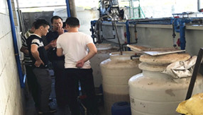 綠森環保技術團隊應客戶要求上門技術調試,客戶廢水:銅和磷超標的清洗廢水。廢水含有石油類。 (廢水處理前如圖) 綠森環保技術團隊針對客···